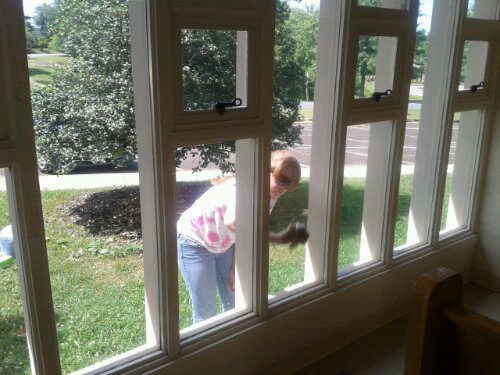 Washing the windows of the sanctuary
