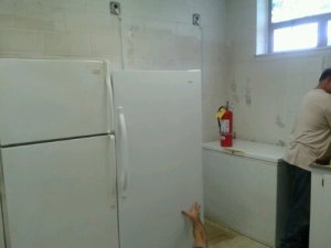 The new (or new to us) fridges in place. Still needs a bit of painting!