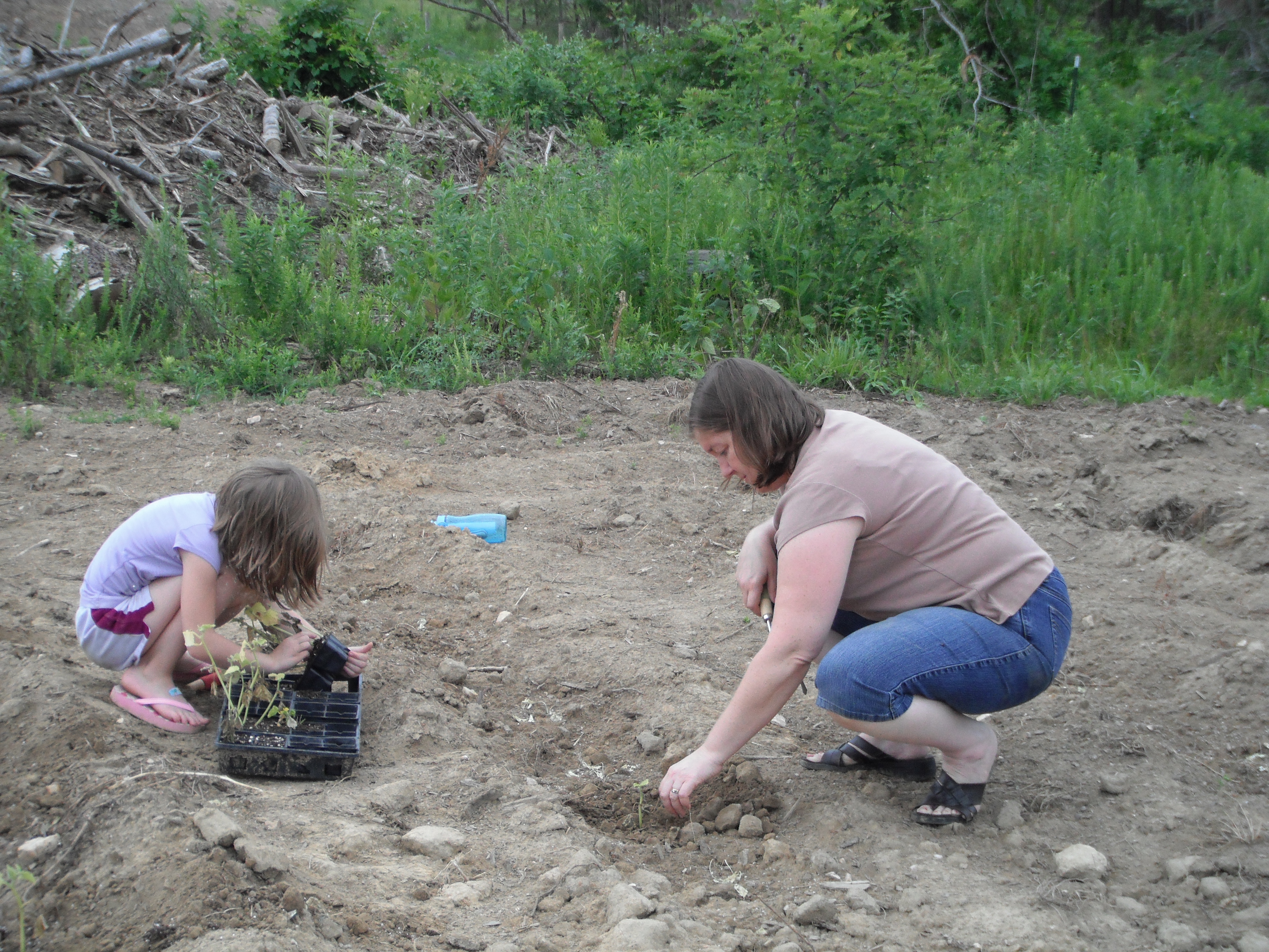 Mariella and Kelly Kern plant cucumber starts on the Volunteer Farm in Culpeper.
