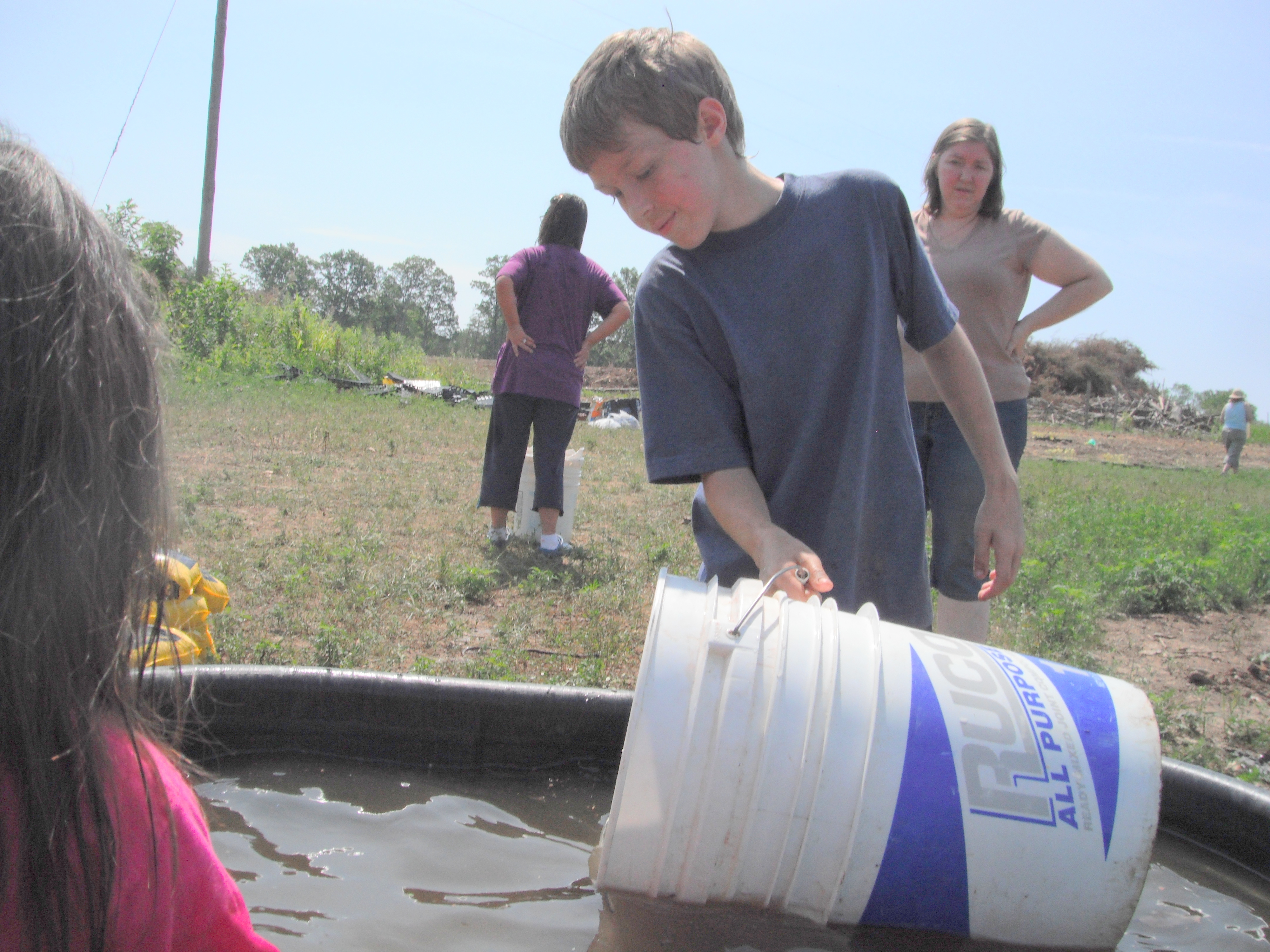 Timothy Kern collects water to spread on the cucumber plants at the Volunteer Farm in Culpeper.